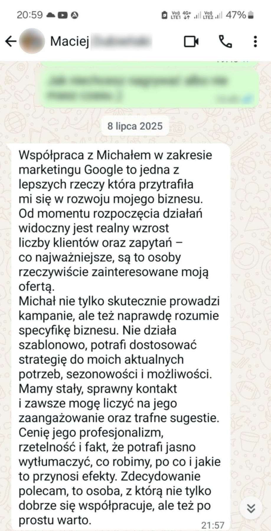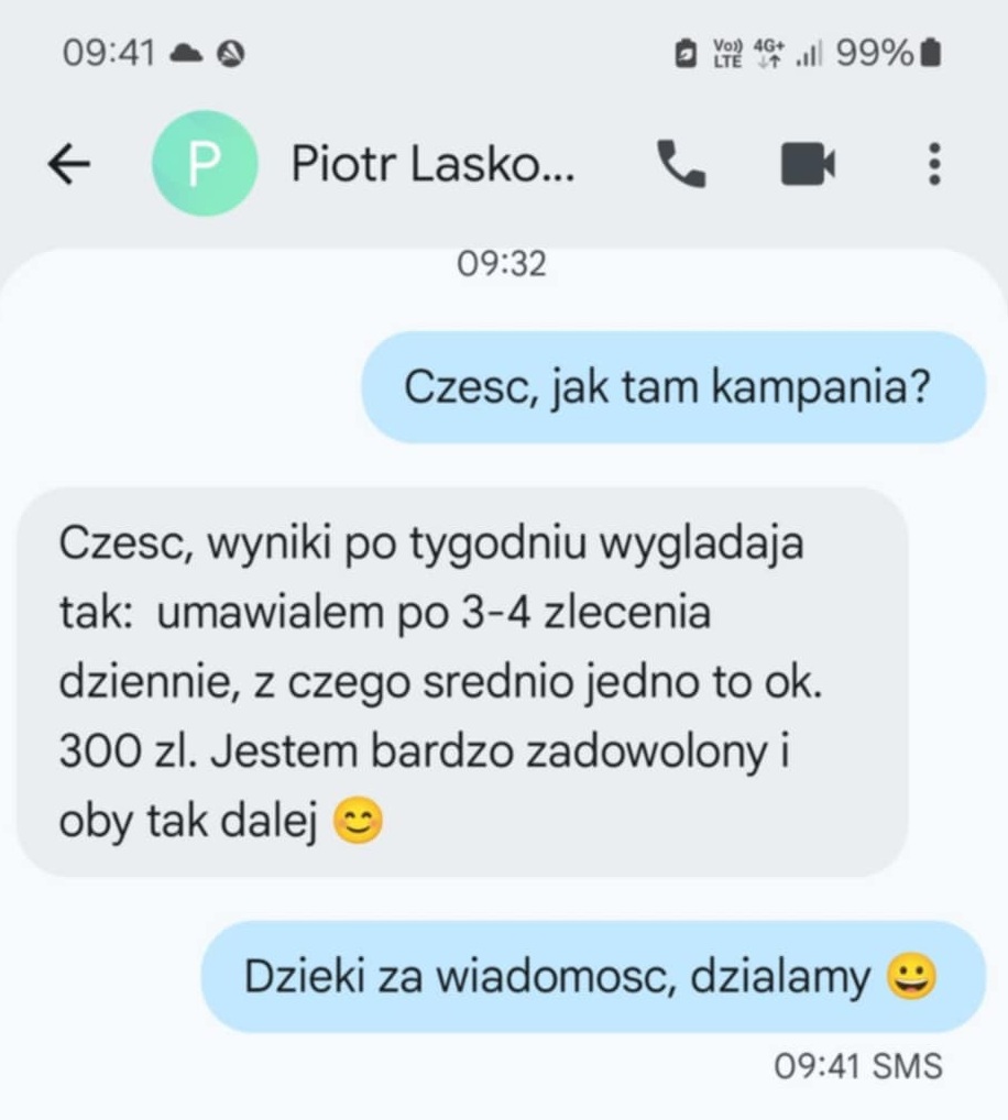 Pracuję wyłącznie z ograniczoną liczbą klientów, dzięki czemu mogę poświęcić każdemu pełną uwagę. Stawiam na jakość i skuteczność działań, a nie na masową obsługę – każda kampania jest dla mnie priorytetem.