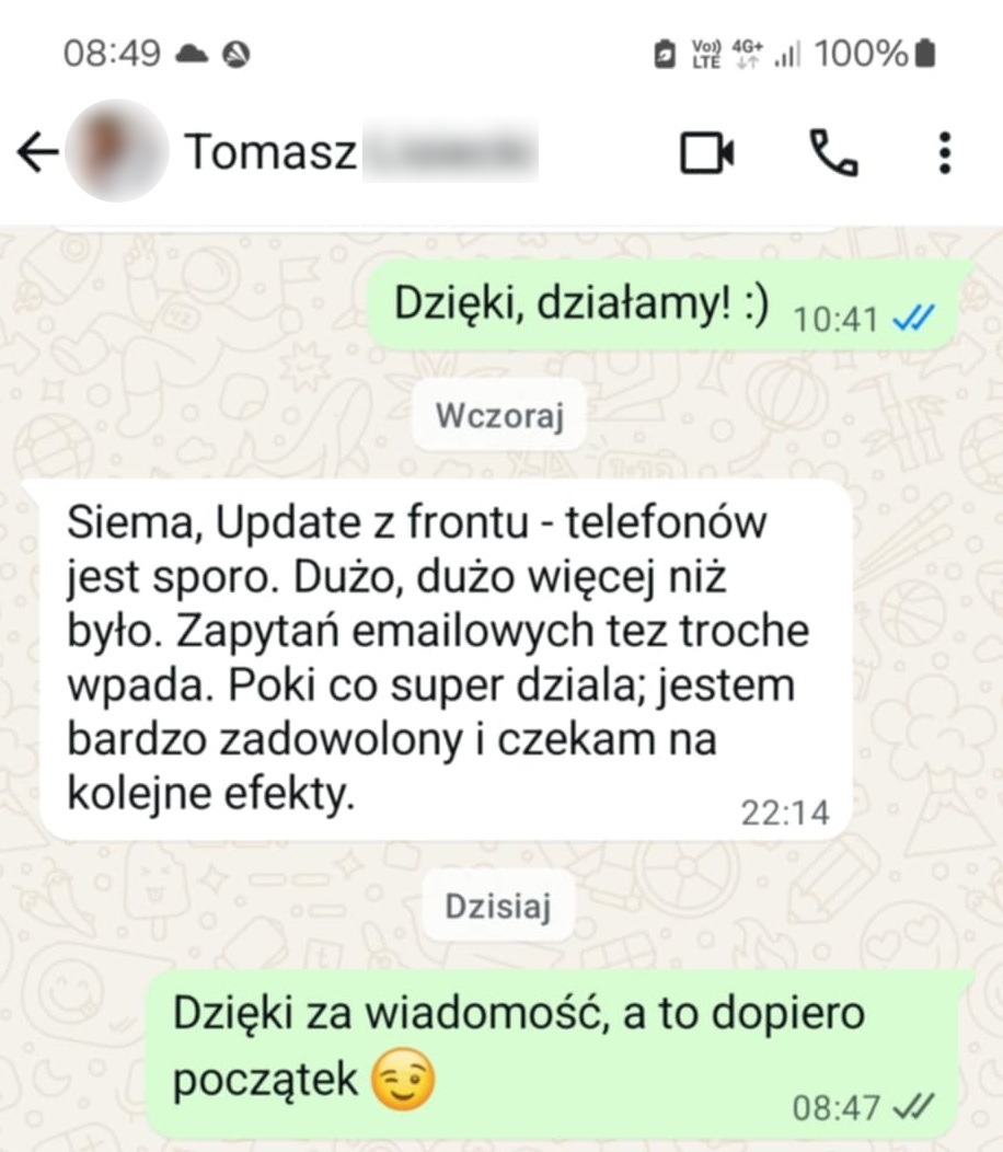 Możesz skontaktować się ze mną w każdej chwili – telefonicznie lub mailowo. Osobiście czuwam nad realizacją kampanii.